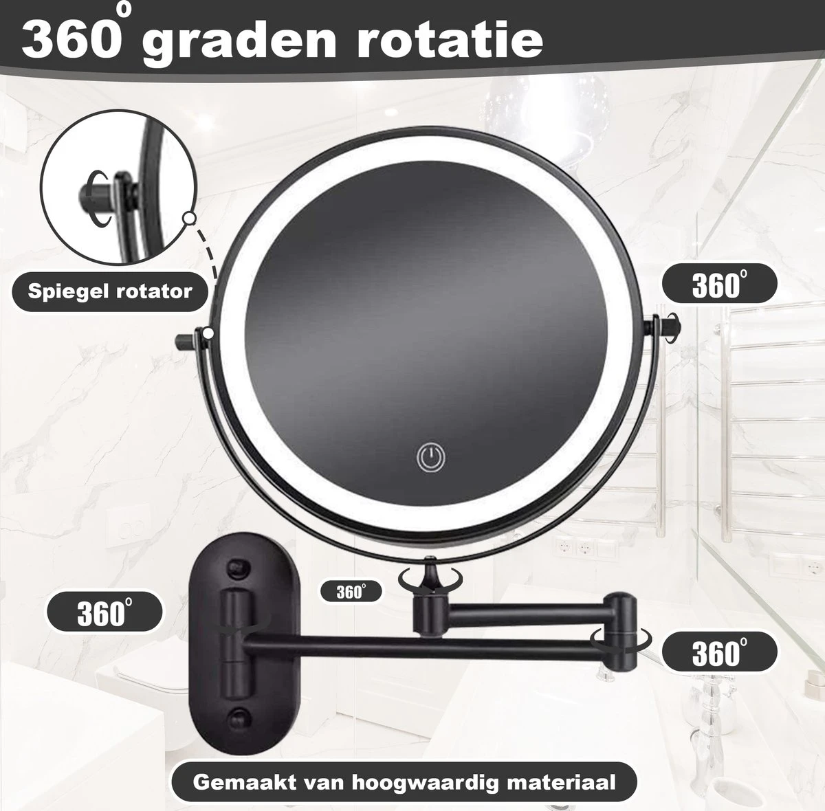 - Dubbelzijdige LED spiegel 1x-10x vergroting